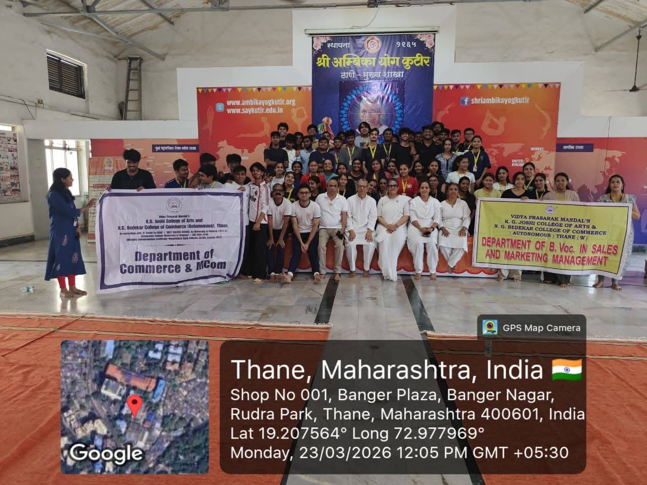 Community Engagement Project in the title of Mindful Eating at semester 4 of SYBvoc, iBcom ,and BDMA Classes. conducted On 23 March 2026.at Shri Ambika Yoga Kutir, Thane main branch